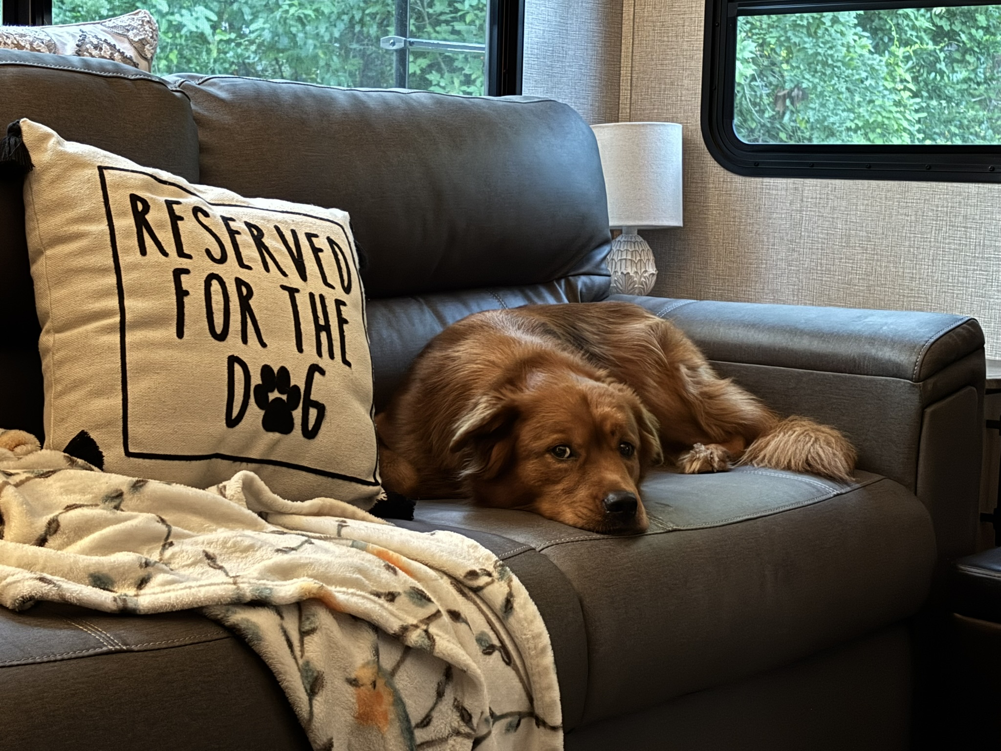 Spacious Living Area: Large slide-out with dinette and 4 chairs and a sofa — that turns into a bed full size bed, sleeping up to 2 comfortably.